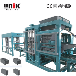Otomatik çimento tuğlası makinesi esas olarak dokuz parçadan oluşur: çerçeve tertibatı, basınç başlığı tertibatı, titreşim tertibatı, besleme arabası, hazne tertibatı, plaka besleyici, tuğla çıkış makinesi, hidrolik sistem ve kontrol sistemi. Çalışırken, karışık malzemeler haznede depolanır ve farklı tuğlalar için gerekli malzemeler zaman kontrolü yoluyla besleme arabasına aktarılır ve besleme kutusu, besleme için yağ silindiri aracılığıyla kalıbın tepesine gönderilir ve basınç kafası aşağı bastırılır ve aynı anda titreşimli hızlı prototipleme başlatılır, tahta besleyici, şekillendirilmiş tuğlaları tuğla çıkarma platformuna iter ve tüm üretim süreci kontrol sistemi tarafından otomatik olarak kontrol edilir. Farklı gereksinimleri karşılamak için çeşitli boyutlarda blok yapma makinelerimiz var. Detaylı bilgiye ihtiyacınız varsa lütfen sales@unikmachinery.com adresinden bizimle iletişime geçmekten çekinmeyin.